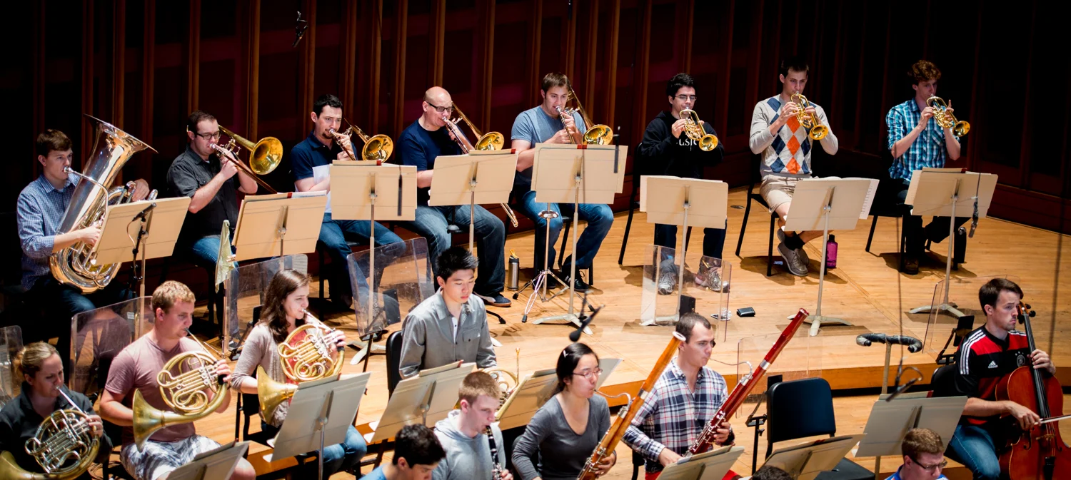 Associate Principal Trumpet, Tom Siders warms up at the beginning of day 1.